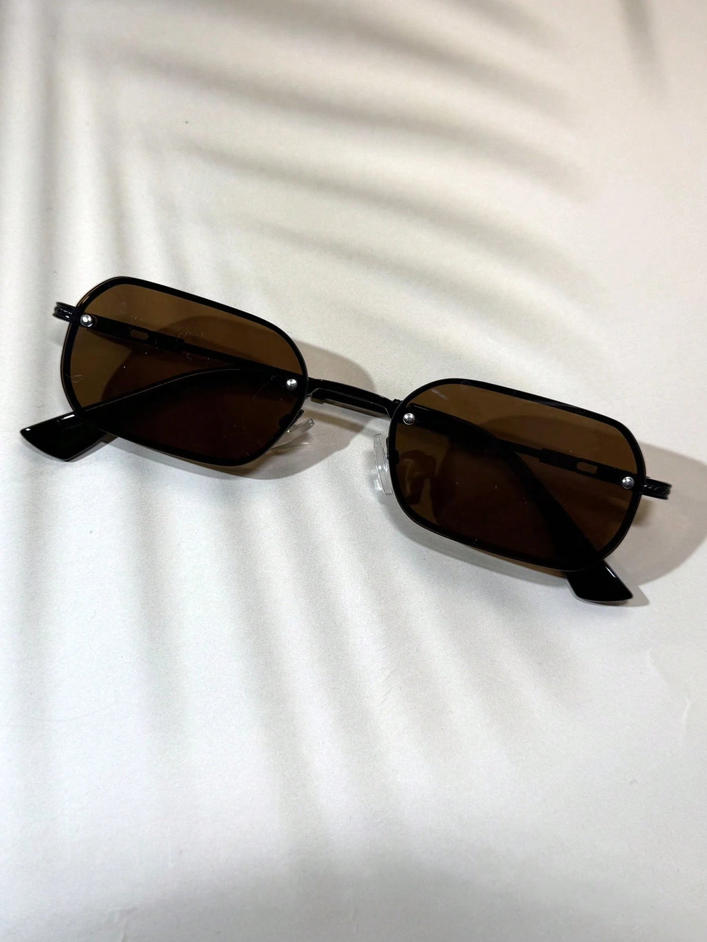 1 Piece Retro Square Black Glasses with Caramel Lens and Copper Frame Mini Classic Fashion Y2K, Suitable for Daily Wear, Photography, Vacation, Travel (Includes Glasses Case, Cleaning Cloth, Lanyard)